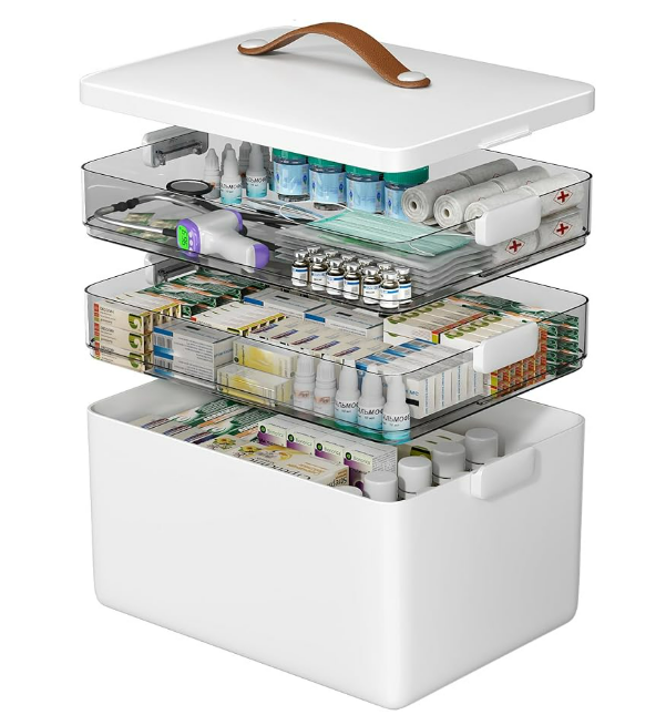 - [3-Layer Large Capacity Design]The 2025 New Medicine Storage Box features a spacious 3-layer design, perfect for organizing pills, ointments, medicine bottles, and more. With ample room, it helps you keep your medicines neat and easily accessible (Size:13.38*8.67*10inch).