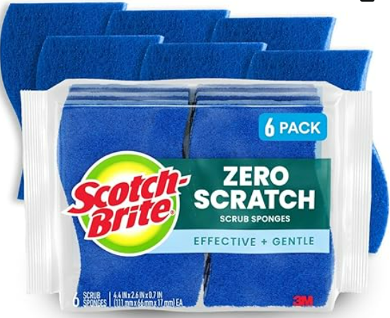- SIX SCRUBBING SPONGES: This pack of Scotch-Brite Zero Scratch Scrub Sponges includes six sponges.
